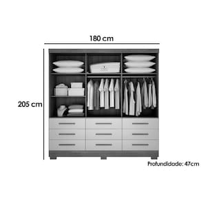 Dimensões(Cm): Comprimento(Profundidade): 47cm x Largura: 180cm x Altura: 205cm