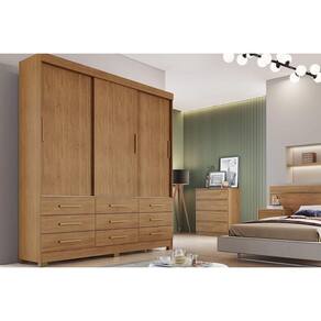 Material do Calceiro - Calceiro Metálico Tipo de Cabideiro - Aéreo Material dos Cabideiros - Cabideira Metálico Tipo de Porta do Guarda-Roupa - Portas Correr com Roldanas de Molas Material das Portas - Portas em MDP Material do trilho da porta de correr - Trilho Metálico - Trilho Superior Metálico Quantidade de Portas - 3 Portas de Correr Material das Gavetas - Gavetas em MDP Tipo de Corrediça - c/ Corrediças Telescópicas Quantidade de Gavetas - 9 Material das Prateleiras - Prateleiras em MDP