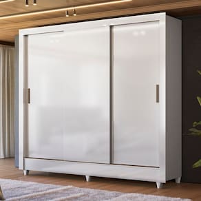 precisa ocupar aquele espaço pequeno dentro do quarto e precisa de funcionalidade. Possui 2 amplas gavetas internas com corrediças metálicas. Cabideiros em alumínio e muitas prateleiras. Para a abertura das suas portas, conta com puxadores em ABS, com design moderno e bonito. O acabamento é em verniz brilhante, tudo feito dentro dos padrões de preservação do meio ambiente, com sustentabilidade. As portas são em 15cm e deslizam sobre trilhos de alumínio. Possui pés em PVC, permitindo que o guarda-roupa fique elevado do chão, facilitando a limpeza embaixo dele. Espelhos na porta central são opcionais. Design moderno e com muita delicadeza para compor aquele quarto dos sonhos! Acabamento da Prateleira: Pintura Escala de Brilho da Prateleira: Brilhante Possui Cabideiros: Sim Acabamento da Gaveta: Verniz Escala de Brilho da Gaveta: Brilhante Possui Organizador de Gaveta: Não Acabamento da Porta: Verniz Escala de Brilho da Porta: Brilhante Material do Puxador da Porta: ABS Acabamento dos Pés: Poliéster Altura dos Pés: 7 cm Altura Máxima dos Pés: 7.0000 Ambiente Principal: Quarto codigo_ean: 7900288257093 Complexidade da Montagem: Média: pode ser montado por mais de uma pessoa e/ou necessite de maior conhecimento para montagem Cor: Branco Cor da Porta: Branco Cor do Produto: Branco Cor do Puxador: Bege Cor Interna: Branco Escala de Brilho: Brilhante Espessura da Estrutura (mm): 12 mm Espessura das Portas (mm): 15 mm Espessura das Prateleiras (mm): 12 mm Espessura do Fundo (mm): 2,5 mm Espessura do Fundo das Gavetas (mm): 2,5 mm Gaveta com Chave: Não Guarda-Roupa Suporta Até (kg): 77 kg Itens Inclusos: 1 Guarda-Roupa e Kit Ferragem Linha ou Coleção: Roma Manual de Montagem e Instalação: https://product-hub-prd.madeiramadeira.com.br/445218374/documents/6541b4cd-630d-4837-94da-c8e2fb25f2e1bc7c353b82d3dcf51759759123.pdf Marca: Santos Andirá Material da Gaveta: MDP Material da Porta: MDP Material da Prateleira: MDP Material dos Pés: PVC Material Principal: MDF/MDP modular: Não Necessita Montagem: Sim Nicho com Cabideiro: Não Origem do Produto: Nacional Peso: 78,75 kg Peso Máximo por Gaveta: 3 kg Peso Máximo por Prateleira: 8 kg Porta Janelada: Não Possui Calceiros: 02 Possui Espelho: Não Possui Pés: 06 Possui Portas: Sim Possui Prateleiras: Sim Produto Montado: Sim Quantidade de Cabideiros: 01 Cabideiro Quantidade de Gavetas: 02 Gavetas Quantidade de Prateleiras: 05 Prateleiras Recomendações de Uso, Manutenção e Limpeza: Durabilidade: Permite ser desmontado e montado até cinco vezes. 5 – Manutenção: Não limpar com álcool ou qualquer outro produto químico, utilize somente pano seco ou levemente umedecido. Sapatas Niveladoras: Não Sistema de Montagem: Parafusos, Cavilha, Minifix Suporta Até (kg): 77 kg Tipo de Corrediça da Gaveta: Metálica Simples Tipo de Dobradiça/Corrediça da Porta: Metálica Tipo de Gaveta: Interna Tipo de Guarda-Roupa: Solteiro Tipo de Puxador da Gaveta: Não Possui Tipo de Puxador da Porta: Externo