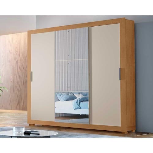 Guarda Roupas 3 Portas De Correr Veneza Luxo E 4 Gavetas C/ Pés Naturale/off White - Rufato