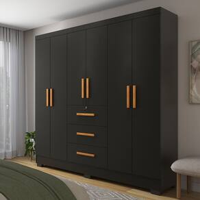 O roupeiro Amanda 6 portas é a escolha perfeita para quem busca espaço, funcionalidade e elegância em um único móvel. Seu design moderno valoriza o ambiente, oferecendo ampla capacidade interna para organizar roupas, calçados e acessórios de forma prática. As portas com acabamento sofisticado e puxadores robustos conferem um toque de requinte, enquanto o interior bem distribuído garante praticidade no dia a dia. Uma peça versátil e duradoura, ideal para compor quartos com estilo e bom gosto. Acabamento da Prateleira: Pintura UV Escala de Brilho da Prateleira: Brilhante Possui Cabideiros: Sim Acabamento da Gaveta: Pintura UV Escala de Brilho da Gaveta: Brilhante Material do Puxador da Gaveta: MDF Possui Organizador de Gaveta: Não Acabamento da Porta: Pintura UV Escala de Brilho da Porta: Brilhante Material do Puxador da Porta: MDF Acabamento dos Pés: Pintura Altura dos Pés: 5 cm Altura Máxima dos Pés: 5.0000 Ambiente Principal: Quarto codigo_ean: 7900288283689 Complexidade da Montagem: Alta: deve ser montado por um montador especializado Cor: Preto Cor da Porta: Branco Cor do Produto: Preto Cor do Puxador: Branco Cor Flex: Não Cor Interna: Preto Escala de Brilho: Brilhante Espessura da Estrutura (mm): 12 mm Espessura das Portas (mm): 12 mm Espessura das Prateleiras (mm): 12 mm Espessura do Fundo (mm): 3 mm Espessura do Fundo das Gavetas (mm): 400 mm Gaveta com Chave: Sim Itens Inclusos: 1 Guarda-Roupa, Kit Ferragem e Kit de Montagem Linha ou Coleção: Amanda Manual de Montagem e Instalação: https://product-hub-prd.madeiramadeira.com.br/261603679/documents/5f1ab23a-ed9e-473a-99bf-4977fa98a51a330740186717619270292736.pdf Marca: J&A Móveis Material da Gaveta: MDP Material da Porta: MDP Material da Prateleira: MDP Material dos Pés: Plástico Material Principal: MDP modular: Não Montagem Flex: NÃO Necessita Montagem: Sim Nicho com Cabideiro: Sim Origem do Produto: Nacional Peso: 90 kg Peso Máximo por Gaveta: 10 kg Peso Máximo por Prateleira: 7 kg Porta Janelada: Não Possui Calceiros: 01 Possui Espelho: Não Possui Pés: 06 Possui Portas: Sim Possui Prateleiras: Sim Produto Montado: Sim Quantidade de Cabideiros: 01 Cabideiro Quantidade de Gavetas: 03 Gavetas Quantidade de Prateleiras: 04 Prateleiras Recomendações de Uso, Manutenção e Limpeza: Limpeza com Pano Seco Sapatas Niveladoras: Não Sistema de Montagem: Parafusos, Bucha, Porca Suporta Até (kg): 40 kg Tipo de Corrediça da Gaveta: Metálica Telescópica Tipo de Dobradiça/Corrediça da Porta: Metálica Tipo de Gaveta: Externa Tipo de Guarda-Roupa: Solteiro Tipo de Puxador da Gaveta: Externo Tipo de Puxador da Porta: Externo undefined: 261603679