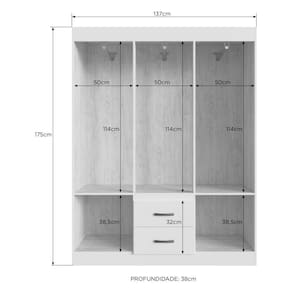 Altura: 175cm | Largura: 137cm | Profundidade: 38cm