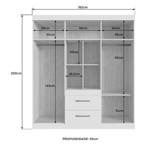 Dimensões do produto montado: Altura: 200cm | Largura: 180cm | Profundidade: 47cm *Você pode consultar as medidas detalhadas na imagem técnica do produto.