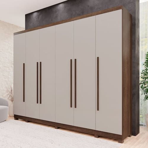 O Guarda-roupa Angra é uma escolha confiável para quem busca durabilidade e funcionalidade. Com sua estrutura sólida em chapa de 1,5 cm que possui tecnologia Perfect Wood contra fungos e bactérias, com amplo espaço interno, possui espaço para vestidos, oferece organização e praticidade. Seu design inteligente proporciona montagem inteligente, com detalhes como cabideiro em alumínio, e corrediças telescópicas e pés, torna-o uma opção com excelente custo-benefício para qualquer ambiente. Acabamento da Prateleira: BP Melamínico Escala de Brilho da Prateleira: Fosco Acabamento da Gaveta: BP Melamínico Possui Organizador de Gaveta: Não Acabamento da Porta: BP Melamínico Escala de Brilho da Porta: Fosco Altura dos Pés: 7 cm Altura Máxima dos Pés: 7.0000 Ambiente Principal: Quarto codigo_ean: 7900288106582 Complexidade da Montagem: Média: pode ser montado por mais de uma pessoa e/ou necessite de maior conhecimento para montagem Cor: Imbuia/Off White Cor do Produto: Imbuia/Off White Escala de Brilho: Fosco Espessura da Estrutura (mm): 15 mm Espessura das Portas (mm): 15 mm Espessura das Prateleiras (mm): 15 mm Espessura do Fundo (mm): 3 mm Espessura do Fundo das Gavetas (mm): 3 mm Itens Inclusos: 1 Guarda Roupa + 1 Kit Ferragens + 1 Manual de Montagem Linha ou Coleção: Angra Manual de Montagem e Instalação: https://product-hub-prd.madeiramadeira.com.br/983218/documents/acb58f03-c303-4a2d-aeb4-b512154a05602761320493817428476714659.pdf Marca: Espresso Móveis Material da Gaveta: MDP Material da Porta: MDP Material da Prateleira: MDP Material dos Pés: PVC Material Principal: MDP modular: Não Montagem Flex: Sim, o cliente tem duas opções de escolha na montagem da parte interna do Guarda Roupa. Necessita Montagem: Sim Origem do Produto: Nacional Peso: 222,5 kg Peso Máximo por Gaveta: 3 kg Peso Máximo por Prateleira: 5 kg Possui Calceiros: Não Possui Espelho: Não Possui Pés: 10 Possui Portas: Sim Possui Prateleiras: Sim Produto Montado: Sim Recomendações de Uso, Manutenção e Limpeza: Limpeza com pano macio e levemente umedecido. Não utilizar solventes a base e de inflamáveis. Não utilizar produtos abrasivos. Sistema de Montagem: Parafusos e cavilhas Tipo de Corrediça da Gaveta: Metálica Telescópica Tipo de Dobradiça/Corrediça da Porta: Aço Tipo de Gaveta: Interna Tipo de Guarda-Roupa: Casal Tipo de Puxador da Gaveta: Externo Tipo de Puxador da Porta: Externo