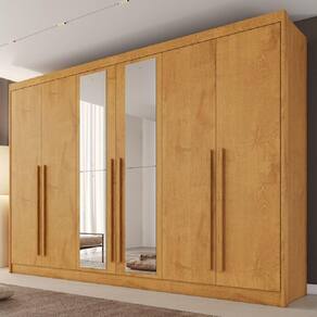 Caracteristicas do produto: Marca: MadeMarcs Modelo: Alba Plus Material: 100 MDF (Madeira de Reflorestamento) Espessura: 15 mm Acabamento: Verniz UV Brilho: Semi-Brilho Sistema de Montagem: Parafusos, Minifix e Cavilhas Quantidade de Portas: 06 Quantidade de Gavetas: 04 com corredicas telescopicas Divisao Interna: ELE e ELA Puxadores: Madeira Espelho: Sim Compartimentos: Para malas, roupas de cama, calcados e objetos pessoais