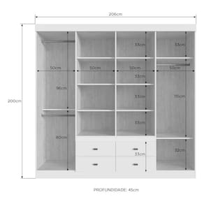 Dimensões do produto montado: Altura: 200cm | Largura: 206cm | Profundidade: 45cm *Você pode consultar as medidas detalhadas na imagem técnica do produto.