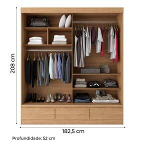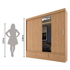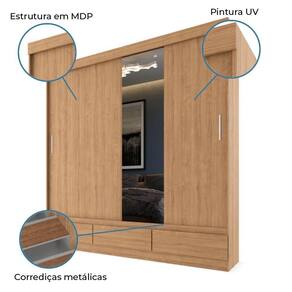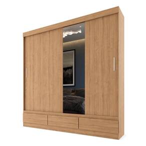 Guarda Roupas Casal Com Espelho 2 Portas De Correr 3 Gavetas Veneza Naturale Naturale