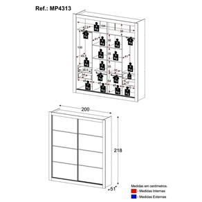 Conteúdo da Embalagem: 1 (um) Guarda-Roupas Kit Ferragem Manual de Montagem