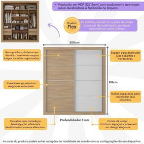 Organização e amplo espaço interno: Os nichos espaçosos são ideais para acomodar roupas, acessórios e calçados com eficiência. A parte superior é perfeita para guardar cobertores e travesseiros, mantendo tudo organizado e de fácil acesso.