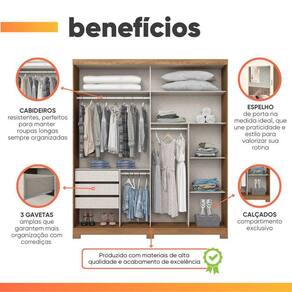 ITENS INCLUSOS: 1 Guarda Roupa, 1 Manual de montagem, 1 Kit Parafusos.