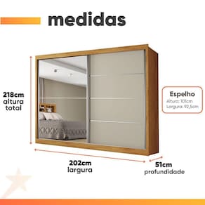 MODELO: Guarda Roupas Casal 2 Portas de Correr com Espelho 4 Gavetas Flex Áustria