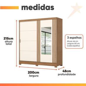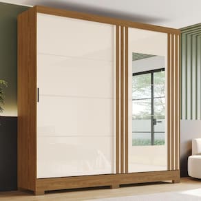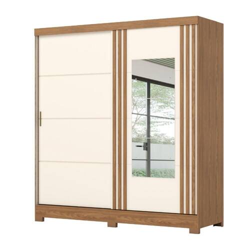 Guarda Roupas Casal 2 Portas De Correr Com Espelho Ripado 3 Gavetas Jasmim Madeirado/off White