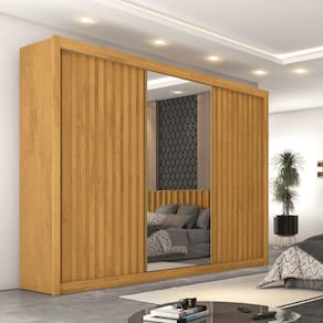 MODELO: Guarda Roupas Casal 3 Portas de Correr com Espelho Ripado 6 Gavetas Dublin