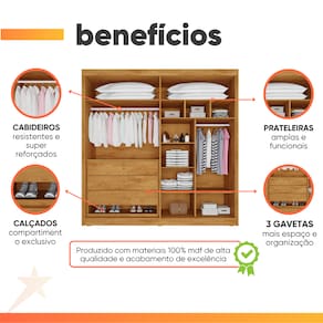 ITENS INCLUSOS: 1 Guarda Roupa, 1 Manual de montagem, 1 Kit Parafusos.