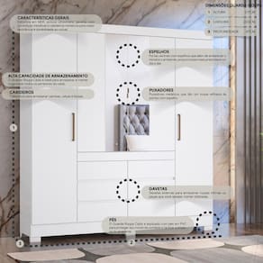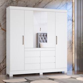 Guarda-roupas Casal 4 Portas 6 Gavetas E Espelhos Multimóveis Cr35192 Branco Branco O Guarda-Roupas Casal 4 Portas 6 Gavetas e Espelhos Multimóveis CR35192 é a escolha perfeita para quem busca organização e elegância num só móvel. Sua estrutura em MDP garante durabilidade e resistência, enquanto o acabamento em pintura UV confere um toque de sofisticação ao ambiente. Com 4 portas, 6 gavetas externas com corrediças metálicas, prateleiras internas e cabideiros metálicos, oferece ampla capacidade de armazenamento para suas roupas e acessórios. As portas centrais possuem puxadores metálicos e espelhos que embelezam o móvel e o ambiente. Além disso, conta puxadores em ABS e pés em PVC que protegem contra umidade e facilitam a limpeza do ambiente. Conteúdo da Embalagem: 1 (um) Guarda-Roupa Manual de Montagem Kit Ferragem