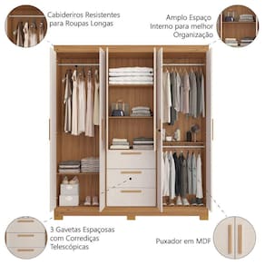 O Guarda Roupas Casal Croácia foi projetado para maximizar o espaço em seu quarto, oferecendo uma combinação perfeita de funcionalidade e design. Com 5 prateleiras internas e 3 gavetas espaçosas, você pode manter todas as suas roupas e acessórios organizados e facilmente acessíveis. Os puxadores em MDF adicionam um toque de sofisticação e elegância, enquanto as corrediças telescópicas garantem uma abertura suave e resistente. Além disso, o cabideiro interno proporciona um espaço ideal para suas roupas ficarem sempre bem alinhadas e organizadas. Com o Guarda Roupas Casal Croácia, você pode desfrutar de um quarto mais organizado e estiloso.
