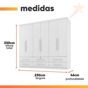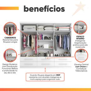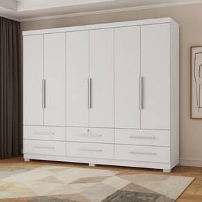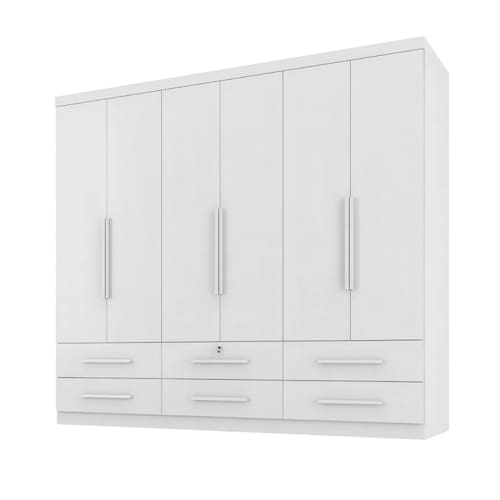 Organize suas roupas e acessórios com estilo e praticidade! O Guarda Roupas Casal Maximus oferece um amplo espaço interno, perfeito para manter tudo em ordem. Com um design moderno trazendo sofisticação ao ambiente. Conta ainda com 6 gavetas espaçosas com corrediças telescópicas sendo uma delas acompanhada de chave. Produzido com materiais de alta qualidade, este guarda roupas é a escolha ideal para quem busca funcionalidade e beleza em um único produto.