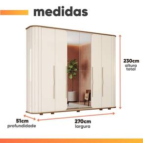 Importante sobre a entrega: A entrega é realizada até a portaria ou porta de entrada do endereço indicado, desde que o acesso seja permitido. Para locais com portaria, a entrega será feita no piso térreo. Não realizamos montagem, desmontagem, transporte por escadas ou içamento. É responsabilidade do cliente verificar se as dimensões do produto são compatíveis com portas, elevadores e corredores. Evite imprevistos: confira todos os detalhes antes de concluir sua compra. MEDIDAS:: A = 230 cm L = 270 cm P = 51 cm | MEDIDAS DO ESPELHO (cada lâmina):: A = 107,8 cm L = 42,5 cm | MEDIDAS DOS PÉS:: A = 6 cm L = 10 cm P = 4 cm | PRATELEIRAS SUPORTAM ATÉ:: 8 kg | GAVETAS SUPORTAM ATÉ:: 3 kg | CABIDEIROS SUPORTAM ATÉ:: 8 kg | PESO:: 224 kg | MODELO:: Guarda Roupas Casal 6 Portas com Amortecimento Ripado 6 Gavetas Tango Premium | MARCA:: Henn | ESPESSURA DO MATERIAL DA ESTRUTURA:: 15 mm | TIPO DE PORTA:: Bater | QUANTIDADE DE PORTAS:: 6 | DOBRADIÇAS:: Metálicas, com amortecedores | GAVETAS:: 6 | CORREDIÇAS:: Telescópicas, abertura suave | QUANTIDADE DE PRATELEIRAS:: 8 | QUANTIDADE DE CABIDEIROS:: 2 | MATERIAL DO CABIDEIRO:: Alumínio | ESPELHO:: Sim, 4 lâminas | QUANTIDADE DE PUXADORES:: 2 unidades, em Alumínio dourado | QUANTIDADE DE PÉS:: 6 unidades | DIFERENCIAL:: Cantos curvos e ripados, dobradiças com amortecedores, corrediças telescópicas com abertura suave e um amplo espelho central | ITENS INCLUSOS:: 1 Guarda Roupa, 1 Manual de montagem, 1 Kit Parafusos. | SISTEMA DE MONTAGEM:: Parafusos e Cavilhas | INSTRUÇÕES E CUIDADOS:: Para limpeza de seu móvel, use uma flanela limpa e seca. Não utilize produtos químicos que possam danificar o produto. | GARANTIA:: 3 Meses | AVISO:: Importante sobre a entrega: A entrega é realizada até a portaria ou porta de entrada do endereço indicado, desde que o acesso seja permitido. Para locais com portaria, a entrega será feita no piso térreo. | Altura: 230 | Largura: 270 | Profundidade: 51 | Requer montagem: Sim | Inclui manual de montagem: Sim | Materiais da estrutura: MDP | Cor: Off White / Madeirado
