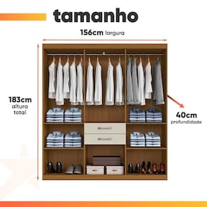ITENS INCLUSOS: 1 Guarda Roupas, 1 Manual de Montagem, 1 Kit Parafusos