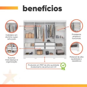 DIFERENCIAL: Produzido em MDP de alta qualidade; Acabamento de pintura em UV 8 portas com dobradiças metálicas.