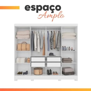 O Guarda-Roupa Casal Moval Diplomata é produzido com materiais de alta qualidade e resistência. Além de seu belo design, possuí 8 portas de bater, divisórias interna (ele/ela), cabideiro para acomodar jeans e peças mais pesadas, prateleiras espaçosas para seus acessórios, cosméticos e roupas de cama, e 4 gavetas com corrediças metálicas que vão guardar perfeitamente as peças de roupas mais delicadas. Disponibilizando ainda de um excelente espaço para os calçados do casal!