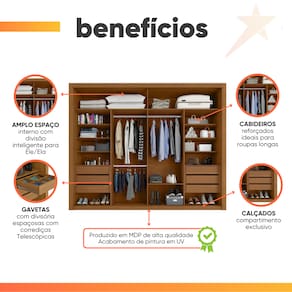 O Guarda Roupa Imperador foi desenvolvido para aliar praticidade e elegância, proporcionando um espaço amplo e bem distribuído para organizar suas roupas, edredons, travesseiros e calçados com eficiência. Seu design moderno e sofisticado conta com duas portas de correr, sendo uma delas com um espelho amplo, agregando funcionalidade e sofisticação ao ambiente. Com seis gavetas espaçosas, as duas primeiras de cada lado possuem divisórias inteligentes, para armazenar pequenos itens com mais organização. Além disso, suas corrediças telescópicas garantem uma abertura suave e completa, proporcionando mais conforto no uso diário! O Guarda Roupa Imperador é a escolha perfeita para quem busca beleza, qualidade e durabilidade em um único móvel.