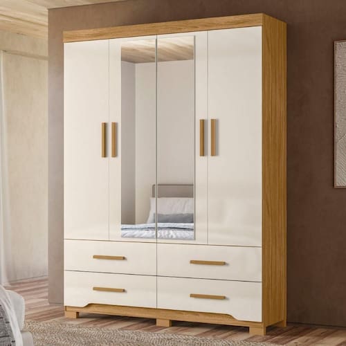 Modelo: Guarda-Roupas Casal com Espelho 4 Portas 4 Gavetas Miami