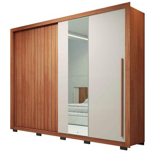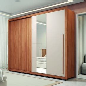 Organize suas roupas e acessórios com estilo e praticidade! O Guarda-Roupa Casal Eloa oferece um amplo espaço interno, perfeito para manter tudo em ordem. Seu design moderno combina uma porta de correr com espelho e outra com detalhe ripado, trazendo sofisticação ao ambiente. Conta ainda com 4 gavetas espaçosas, equipadas com corrediças telescópicas para maior suavidade e durabilidade, além de puxadores em MDF que garantem resistência. Produzido com materiais de alta qualidade, este guarda-roupa é a escolha ideal para quem busca funcionalidade e beleza.