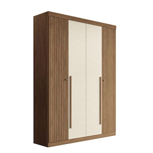 Guarda Roupas Casal Detalhes Frisados 4 Portas 2 Gavetas Buriti Andirá Madeirado / Areia