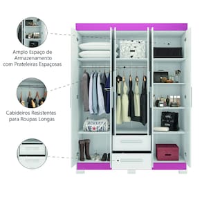 O Guarda Roupas Casal Libano é a solução perfeita para quem busca combinar estilo e funcionalidade em um único móvel. Com 6 portas e 2 gavetas espaçosas, oferece um amplo espaço interno para armazenar roupas, cobertores, sapatos, acessórios e muito mais. Seu design inteligente permite a organização eficiente de roupas longas, graças aos cabideiros resistentes que garantem a segurança e a organização dos seus pertences. Além disso, os puxadores em MDF de alta qualidade garantem a durabilidade e a resistência do móvel. Confeccionado com materiais de alta qualidade, o Guarda Roupas Casal Libano é projetado para garantir maior durabilidade e resistência. É a escolha perfeita para quem buscam um móvel que combine estilo, conforto e funcionalidade.
