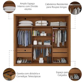 Guarda Roupa Trianon projetado para oferecer beleza e praticidade. Características Principais: Portas de Correr Modernas: 2 portas de correr com batentes e ripados em MDF, garantindo durabilidade e um design elegante. Armazenamento organizado com 4 gavetas (duas de cada lado), todas equipadas com corrediças telescópicas para um deslizar suave e sem esforço, as duas primeiras gavetas vêm com divisões internas, proporcionando uma organização prática e eficiente para seus itens pessoais. Adquira o seu e descubra como a combinação de elegante e eficiência pode transformar seu ambiente!