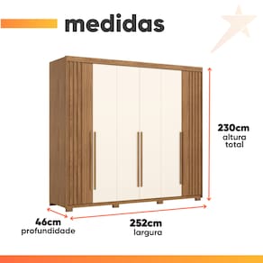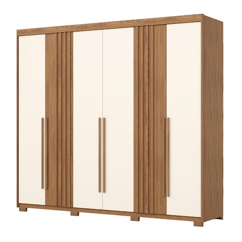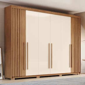 Guarda Roupas Casal Ripado 6 Portas 4 Gavetas Íris - Bege | Marrom