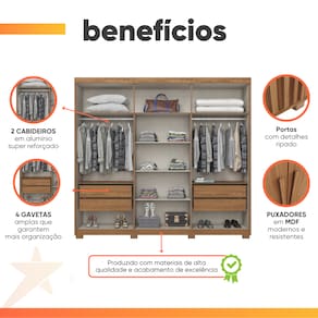 ITENS INCLUSOS: 1 Guarda Roupa, 1 Manual de montagem, 1 Kit Parafusos.