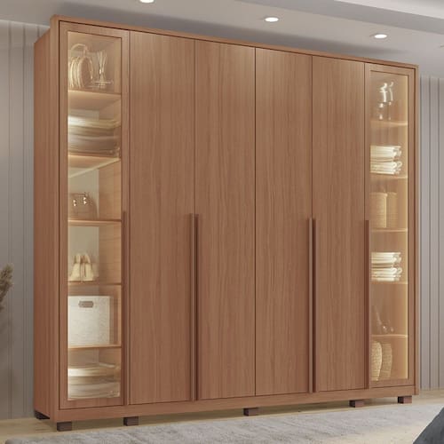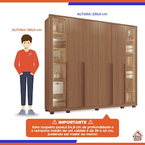 Apresentamos o Guarda-Roupas SALVATORE! Transforme seu ambiente com esta peça inovadora e elegante fabricada em 100% MDF. Com 6 portas e 6 gavetas espaçosas, ele oferece amplo espaço interno e compartimentos multifuncionais para organizar suas roupas com eficiência. Equipado com tecnologia vidro reflecta, iluminação LED e tecnologia slowmotion (sistema de amortecimento) em suas portas, proporcionam um toque moderno e sofisticado. suas gavetas contam com corrediças telescópicas, o que confere maior durabilidade ao móvel e deslizamento suave. O design inclui pés em PVC e puxadores de madeira revestido estilo vintage, unindo funcionalidade e charme. Ideal para quem busca um roupeiro versátil e estiloso.