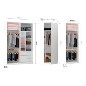 ? Guarda Roupa Closet Aberto 3 Gavetas 2 Cabideiro 159,2cm Prime 236cm x 159,2cm x 54,5cm -AxLxP- - Peso: 108,3kg