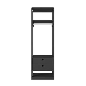 Além de ser produzido em MDP 15mm, o Guarda Roupa possui Cabideiro em Alumínio, 2 Gavetas com Corrediças Telescópicas, Puxador de Furo, 4 Pés