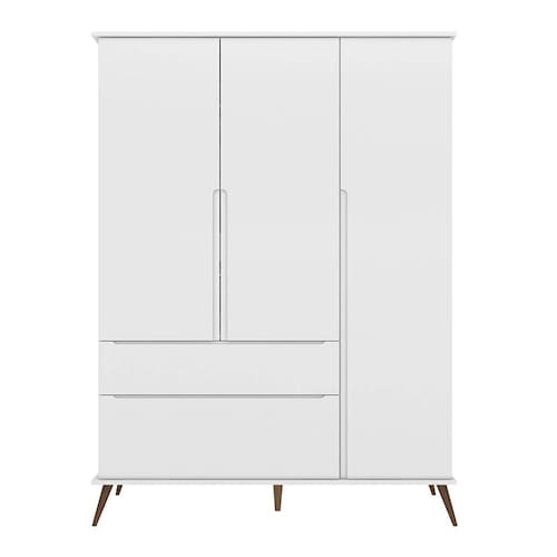 Construído com 100% MDF, este guarda-roupas é robusto e durável, pronto para resistir ao uso diário. Com três portas espaçosas e duas gavetas equipadas com corrediças telescópicas, oferece amplo espaço de armazenamento para roupas, calçados e acessórios. Além disso, possui um prático cabideiro para pendurar roupas.