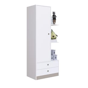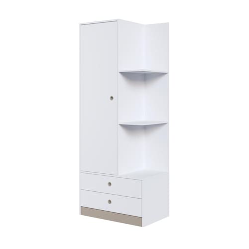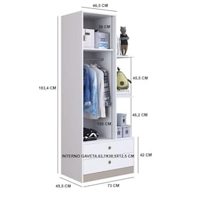O guarda- roupas GR070 possui estrutura em MDP 15mm e acabamento FF fosco. Costas 3mm. Possui 3 prateleiras que suportam até 5kg cada, 1 porta de bater com dobradiça metálica e puxador embutido em plástico e 2 gavetas com corrediça metálica e puxadores plásticos embutidos e 1 cabideiro em alumínio. Produto suporta até 44kg. Conteúdo da embalagem: móvel, ferragens e manual de montagem. A fixação das peças e/ou acessórios é feita por parafusos, cavilhas e minifix. Para uma limpeza mais efetiva, utilizar apenas pano macio umedecido e sabão neutro. Não utilizar produtos abrasivos. Garantia de 03 meses contra defeitos de fabricação. Medidas do produto (AxLxP): 183,4x73x45,5cm. Peso do produto: 44,80kg.