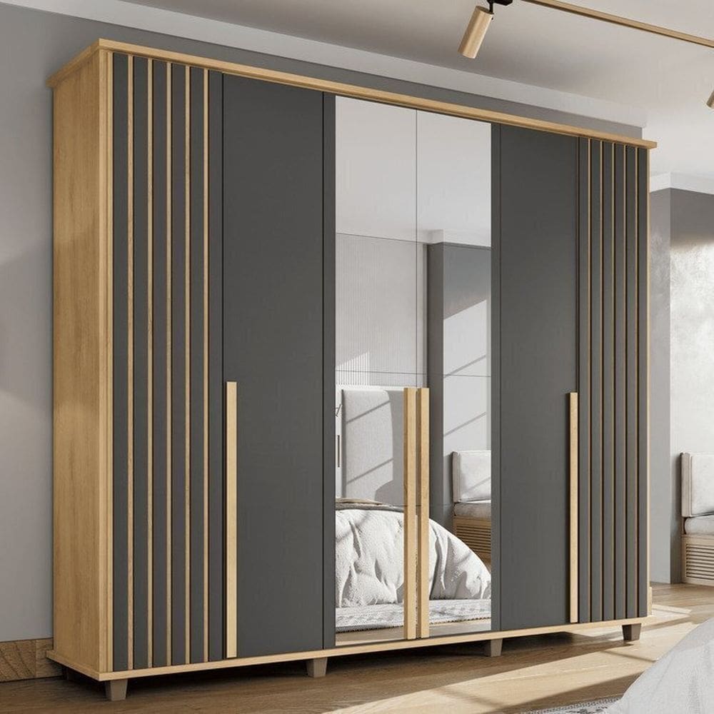 guarda roupas infantil com detalhe rosa e espelho