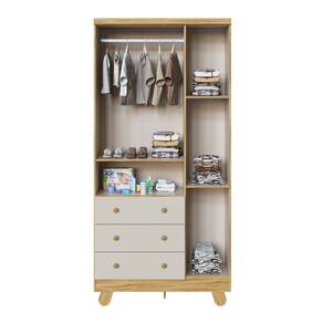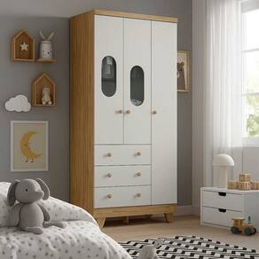 Funcionalidade, organização e charme para o quarto infantil. Este guardaroupa é ideal para quem busca praticidade no dia a dia e um visual acolhedor. Com estrutura resistente em MDF/MDP e acabamento em Off White com Amêndoa, ele está disponível em duas versões de porta: