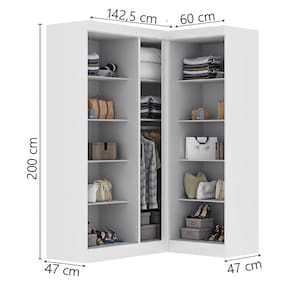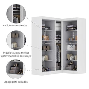 Transforme seu ambiente com o Guarda Roupas Modulado de Canto, que oferece versatilidade e organização para o seu espaço. Com design inteligente em formato de canto, ele aproveita ao máximo cada centímetro do ambiente, oferecendo uma solução funcional e versátil. Seu interior é bem distribuído com cabideiros resistentes para manter as roupas organizadas e sem amassar, prateleiras amplas para acomodar roupas dobradas, acessórios ou caixas, além de um espaço dedicado para calçados. As cinco portas garantem fácil acesso e excelente visualização dos itens armazenados. Ideal para quem busca organização, funcionalidade e aproveitamento inteligente do espaço.