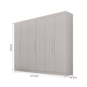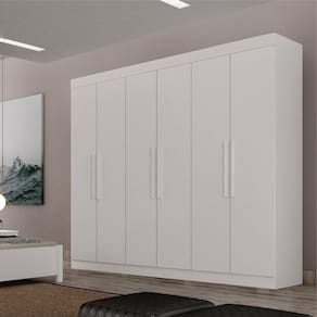 O roupeiro Delta possui 06 portas e duas gavetas na parte interna. Conta com 06 prateleiras muito bem dividas, 02 cabideiros e 01 calceiro facilitando muito a organização no dia a dia.