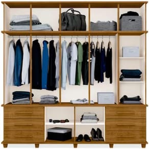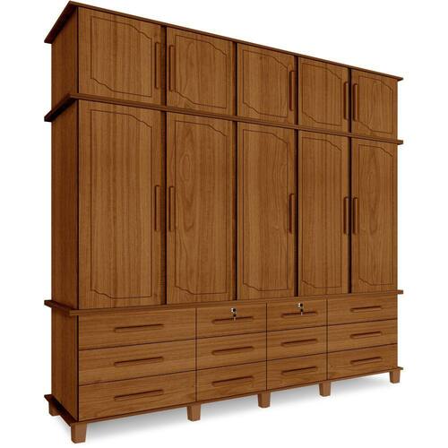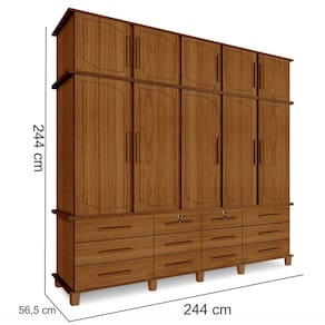 Estrutura: Produto produzido em MDF e MDP.Acabamento: Pintura U.V. (Ultra Violeta) resistente a risco nos painéis e PU (poliuretano) nas bordas soft das portas e gavetas.Pés: 10 pés de madeira reflorestada.Gavetas: 12 gavetas com corrediças metálica, sendo 02 gavetas com chave.Portas: 10 portas com puxadoresCabideiro: Em alumínioExtra: Maior profundidade da categoria, divisões internas na cor bege brilhante propiciando leveza ao ambiente.Altura: 244 cmLargura: 244 cmProfundidade: 56,5 cmPeso: 256,9 KgGarantia: 03 mesesInformações Adicionais: Não possuímos serviço de montagem. Todos os móveis possuem garantia e manual de montagem, Não nos responsabilizamos pelos custos de montagem. É de extrema importância ficar atento às dimensões dos produtos, pois é de sua total responsabilidade caso o produto tenha dimensões superiores ao local de acesso da entrega dificultando ou impossibilitando que a mesma seja concluída. Não nos responsabilizamos, no ato da entrega, por subir escadas, corredores e elevadores ou transporte por guincho em apartamentos. Não nos responsabilizamos por transtornos com a entrega caso o produto necessite de desmontagem, nem pelos custos gerados por esta situação. Imagens meramente ilustrativas a cor, pode variar de acordo com a iluminação do ambiente. Itens de decoração não inclusos.