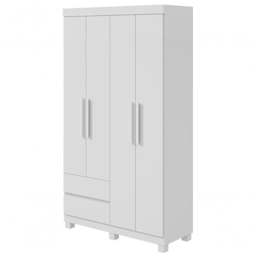 Guarda-roupas Solteiro 4 Portas 2 Gavetas Sem Espelho Com Pés Zeus - Lopas Branco