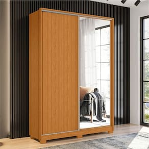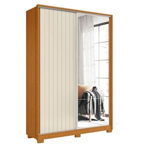 MODELO: Guarda Roupas Solteiro com Espelho 2 Portas de Correr 3 Gavetas Hera Madeirado/Off White Albatroz