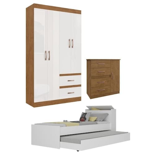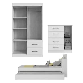 Este Guarda-Roupas Solteiro com Cômoda e Bicama com colchão Multimóveis CR35224 é conjunto de conforto e elegância. Cada peça foi cuidadosamente selecionada para criar um ambiente acolhedor e sofisticado. Produzido em MDP com acabamento acetinado, esse conjunto adiciona um requinte ao ambiente, tornando-se a escolha perfeita para um quarto bonito e organizado.