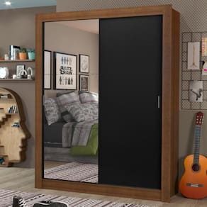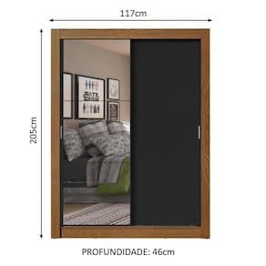 Internamente é muito bem dividido, com duas prateleiras e dois nichos, além de um cabideiro de metal resistente e de tamanho diferenciado, 105 cm, com espaço para roupas longas. Além disso, os espelhos presentes em uma das portas dão mais profundidade ao ambiente e trazem praticidade para o dia a dia.