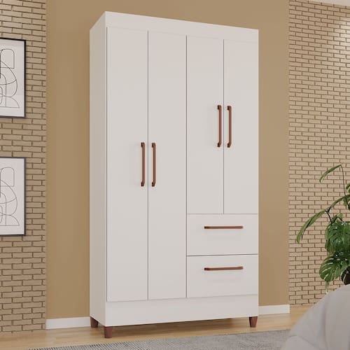 Apresentamos o Guarda-Roupas Star 4 Portas! É um móvel espaçoso e funcional, ideal para organizar roupas e acessórios. Com quatro portas e duas gavetas, oferece amplo espaço de armazenamento. Sua ampla divisão interna facilita a organização de itens diversos. Equipado com corrediças telescópicas e cabideiro de madeira revestido, garante praticidade e durabilidade. É uma escolha versátil e elegante para qualquer ambiente.