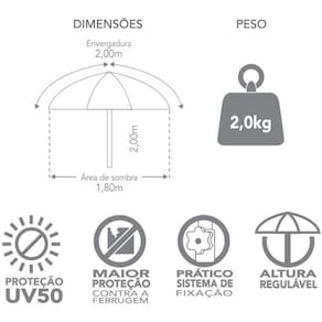 Sua cobertura com fator de proteção solar UV 50 é feita com tecido em oxford em poliéster com camada prateada bloqueando até 98,0% da radiação ultravioleta.