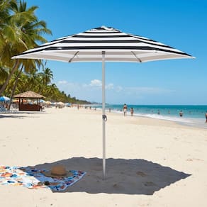 O Guarda-Sol Bel Milagres de 2,40 metros é a combinação perfeita de proteção solar, design moderno e praticidade. Com um charmoso padrão listrado em preto e branco, este guarda-sol eleva o estilo dos seus dias de praia, piscina, camping ou momentos relaxantes no jardim. Sua cobertura em poliéster com revestimento Silver Coating não apenas reflete os raios solares, proporcionando uma sombra agradável, mas também oferece proteção solar FPS 100, essencial para proteger sua pele dos efeitos nocivos do sol. A estrutura robusta, com varetas em fibra de vidro de 11mm, garante resistência a ventos moderados, enquanto a haste em alumínio de 32mm oferece leveza e durabilidade, ideal para uso em ambientes litorâneos. O sistema de ventilação integrado melhora a circulação do ar, evitando o superaquecimento sob o guarda-sol. Acompanha uma prática sacola tiracolo para facilitar o transporte e armazenamento, tornando-o o companheiro ideal para todas as suas aventuras ao ar livre.
